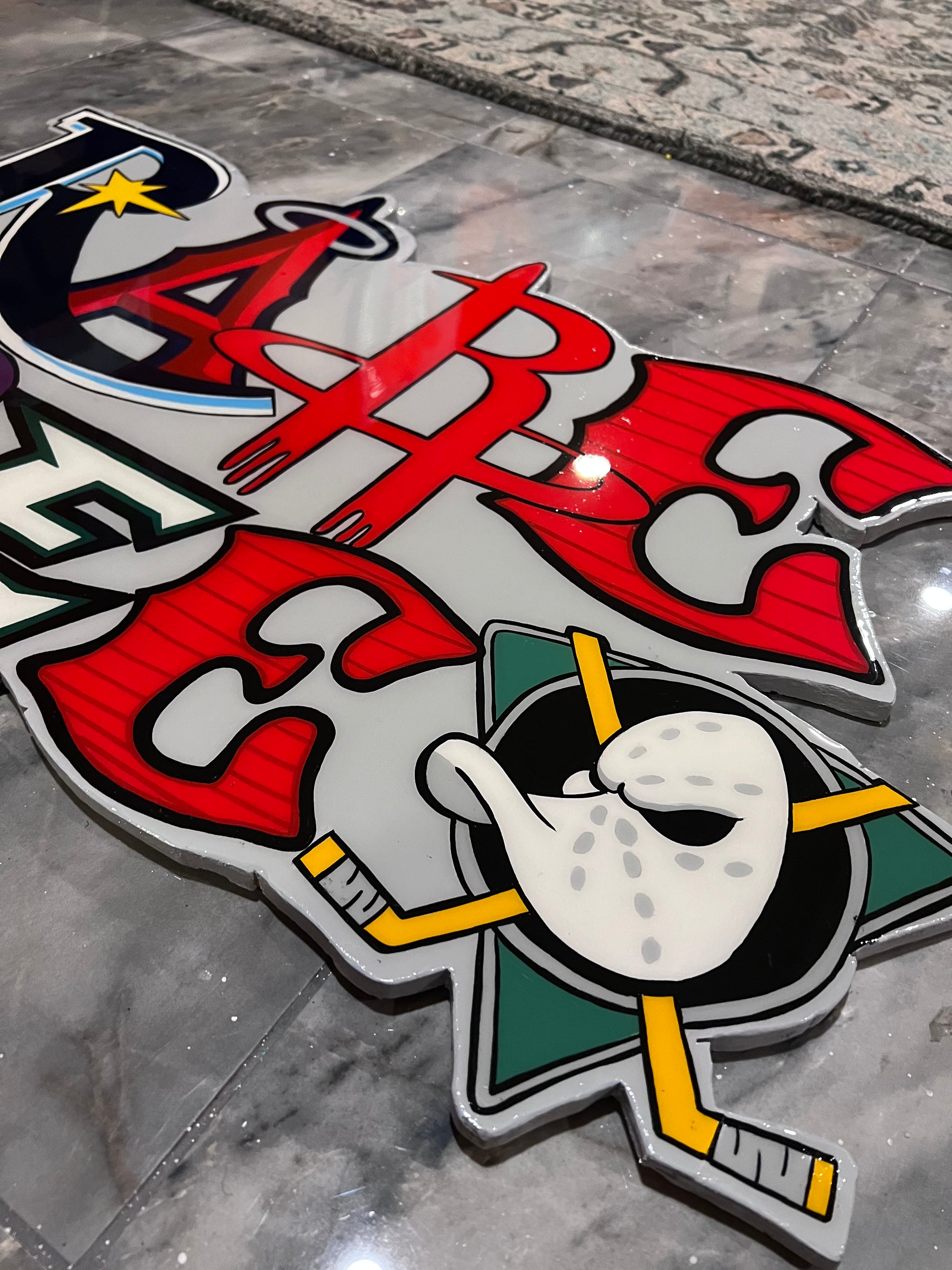 acrylic on wood , with resin finish